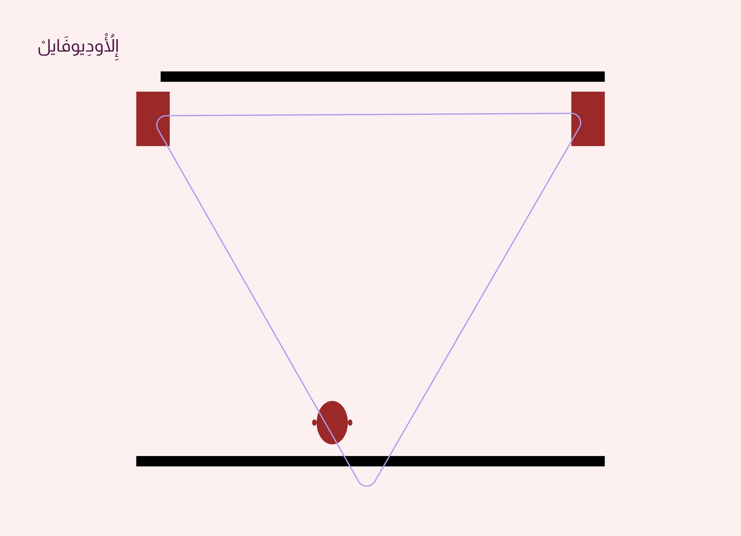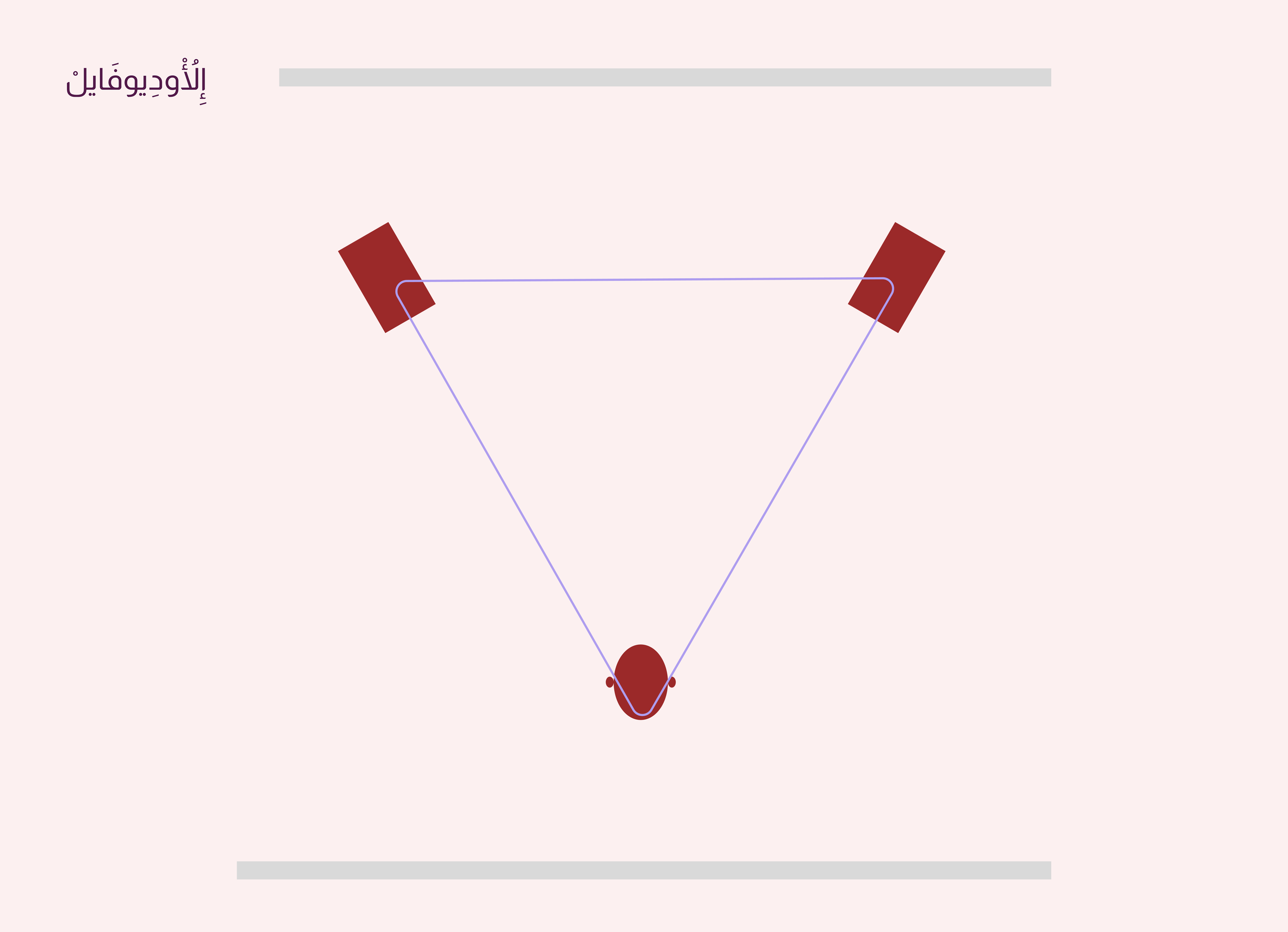 السماعات بعيدة عن الحائط، والمسافة بينها وبين المستمع متساوية، كما أن المستمع بعيد عن الحائط الخلفي